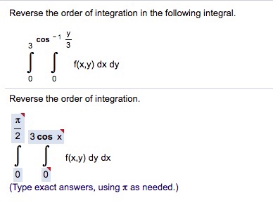 Order of integration, denoted i(d), is a summary statistic for a time series. But the core of the problem is that the iterated integration method (ie, integrate x first, then y or vis versa) itself fails. The given limits have inner variable y. 211,601 students got unstuck by course hero in the last week. How to change the order of the differentials of a triple integral?